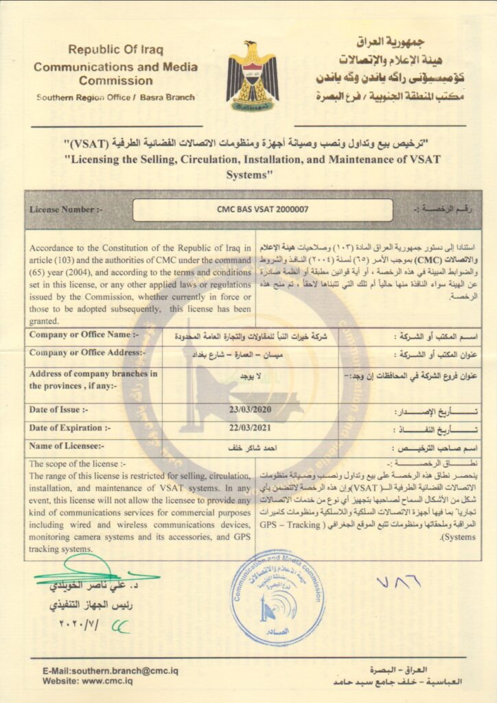 KAC LTD registered in the department of Iraqi companies was date 2008.